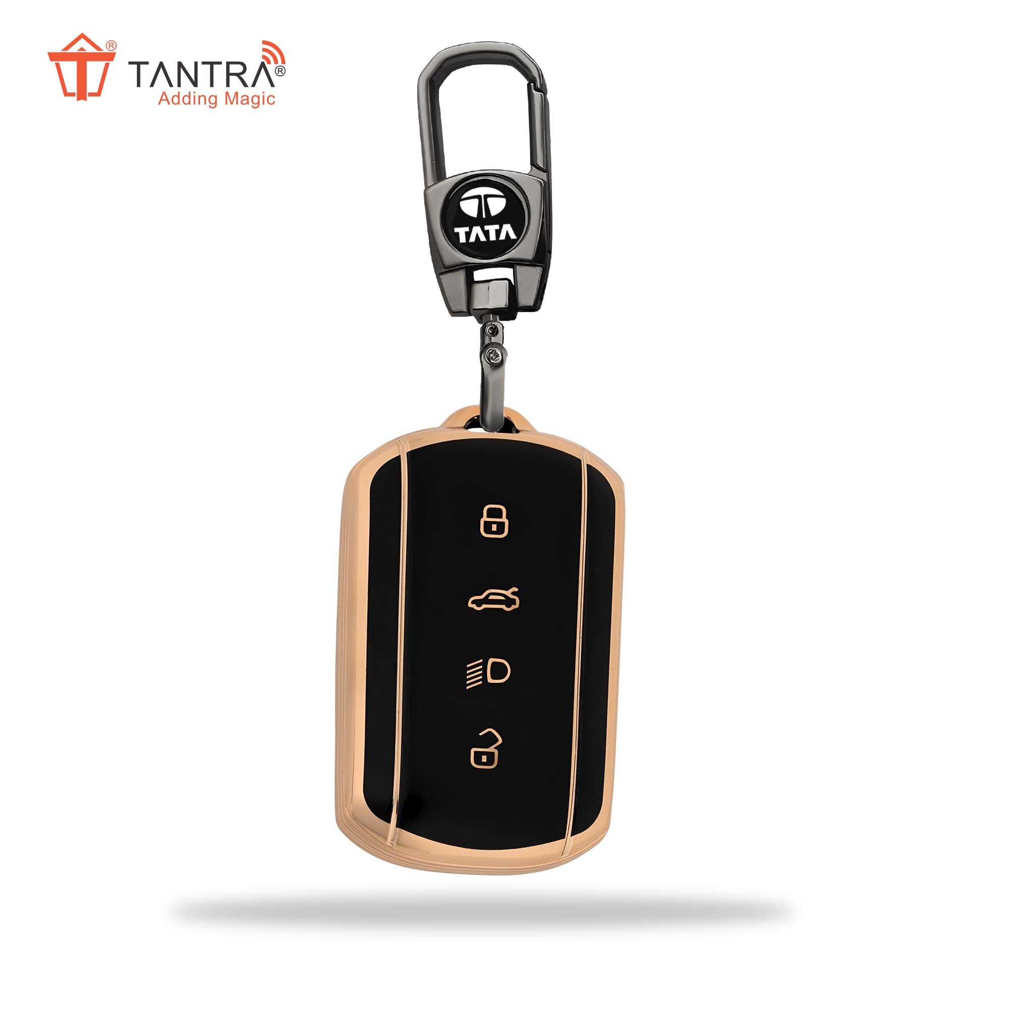 TANTRA TPU Key Cover and Metal Key Chain Compatible with Tata Curvv | Curvv EV Electric 4 Button Smart Key (Black)