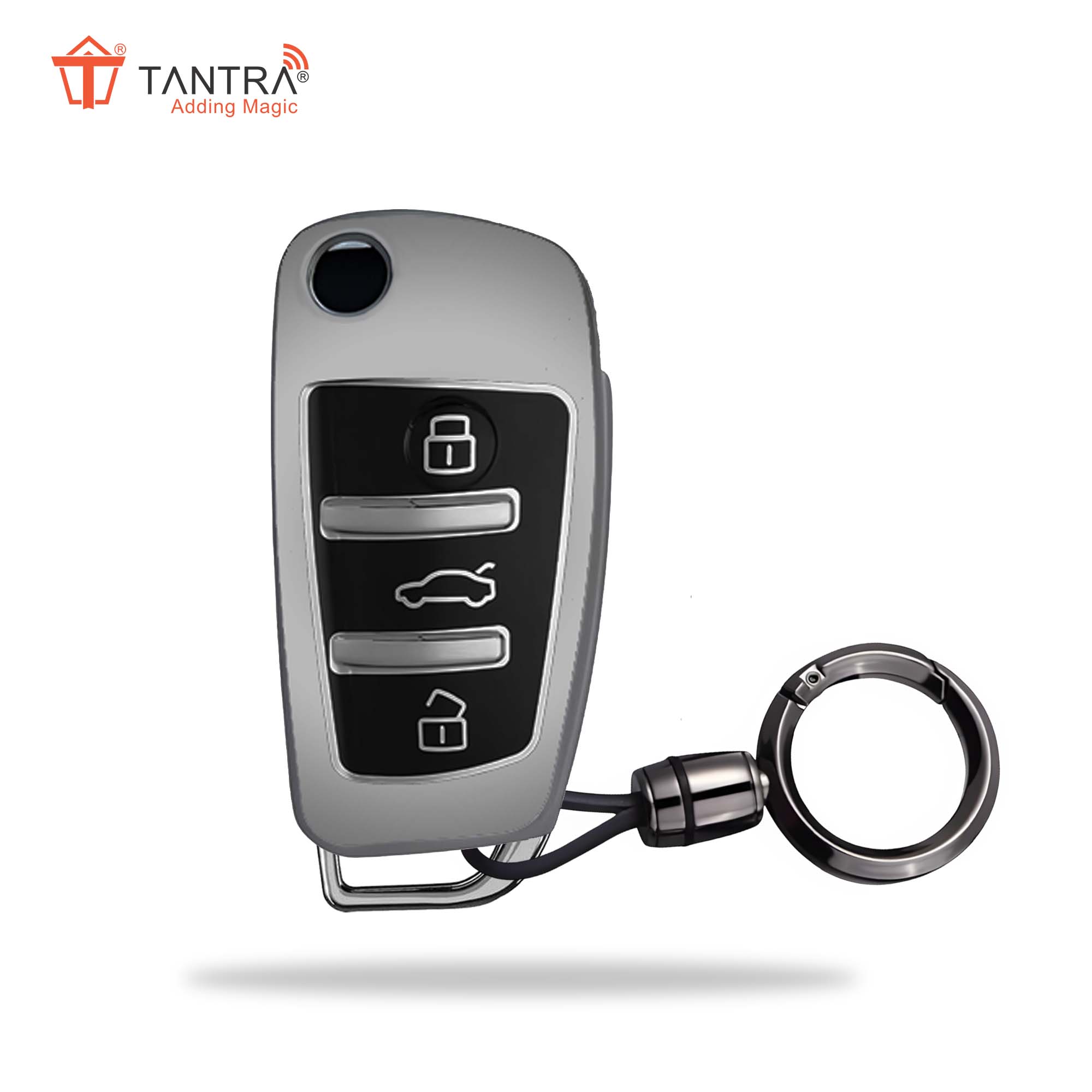 TANTRA TPU Key Cover and Round Key Chain Compatible with Audi A1 A3 A6 Q2 Q3 Q7 TT TTS R8 S3 S6 RS3 3 Button Flip Key (Grey)