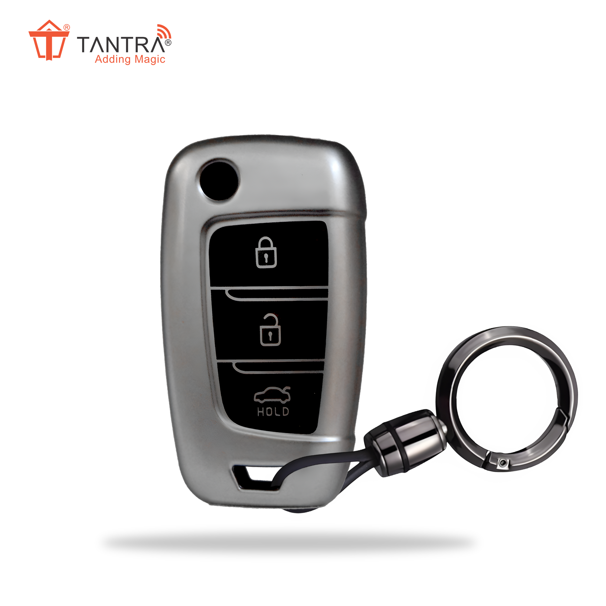 TANTRA TPU Key Cover and Round Key Chain Compatible with Hyundai Verna 2024 2023 | i20 N line N6 Car 3 Button Flip Key (Grey)